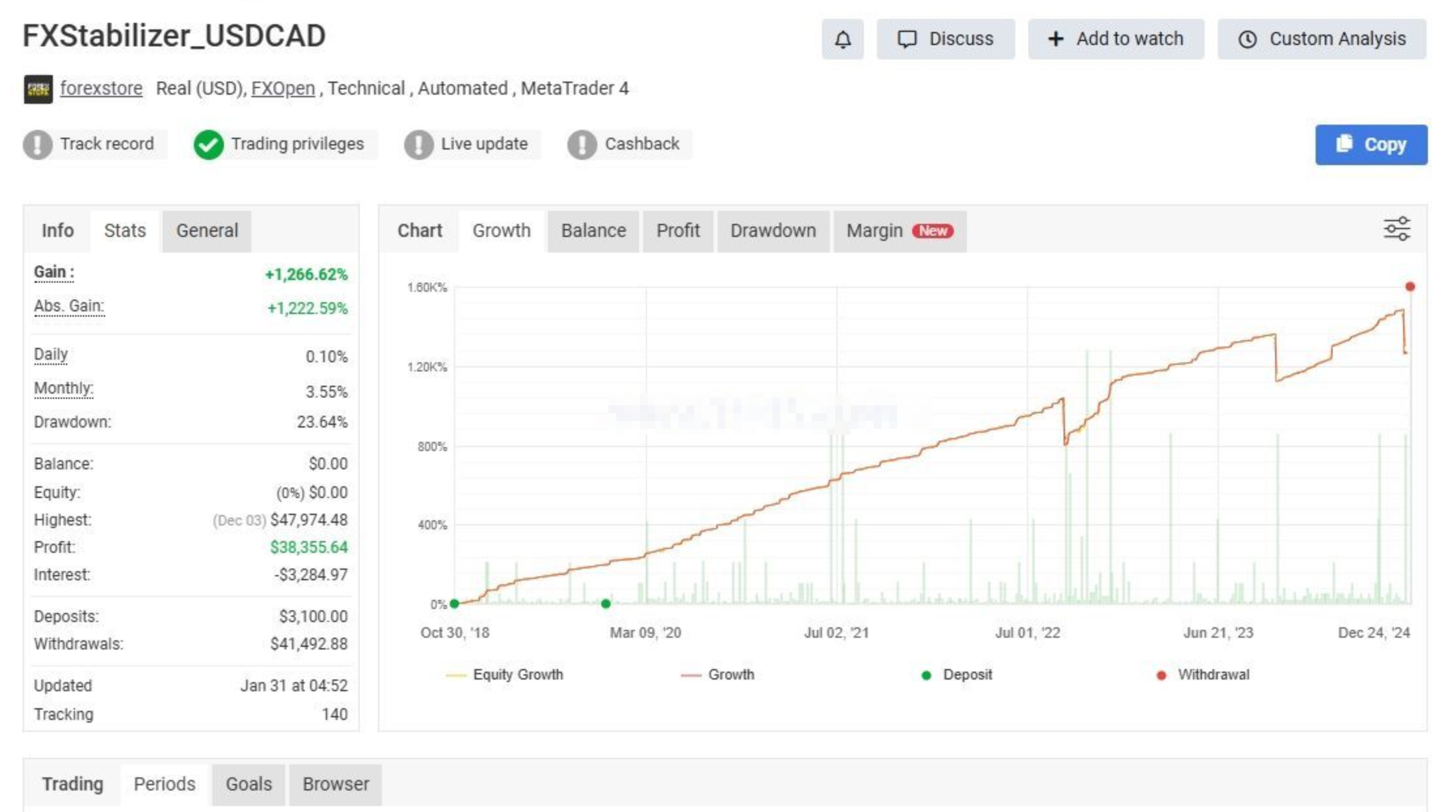 FXStabilizer PRO EA 是一款在外汇市场上运行的自动交易机器人,其核心承诺是为用户带来稳定的每日利润。该EA自2015年开始运行,以其宣称的可靠性和对市场变化的适应性而受到关注。