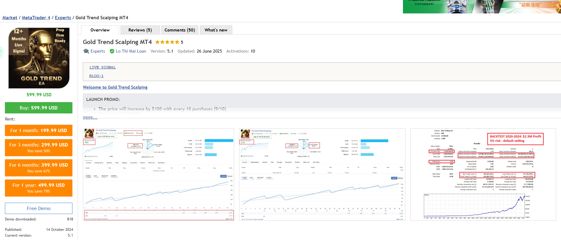 Gold Trend Scalping MT4 V2.3
