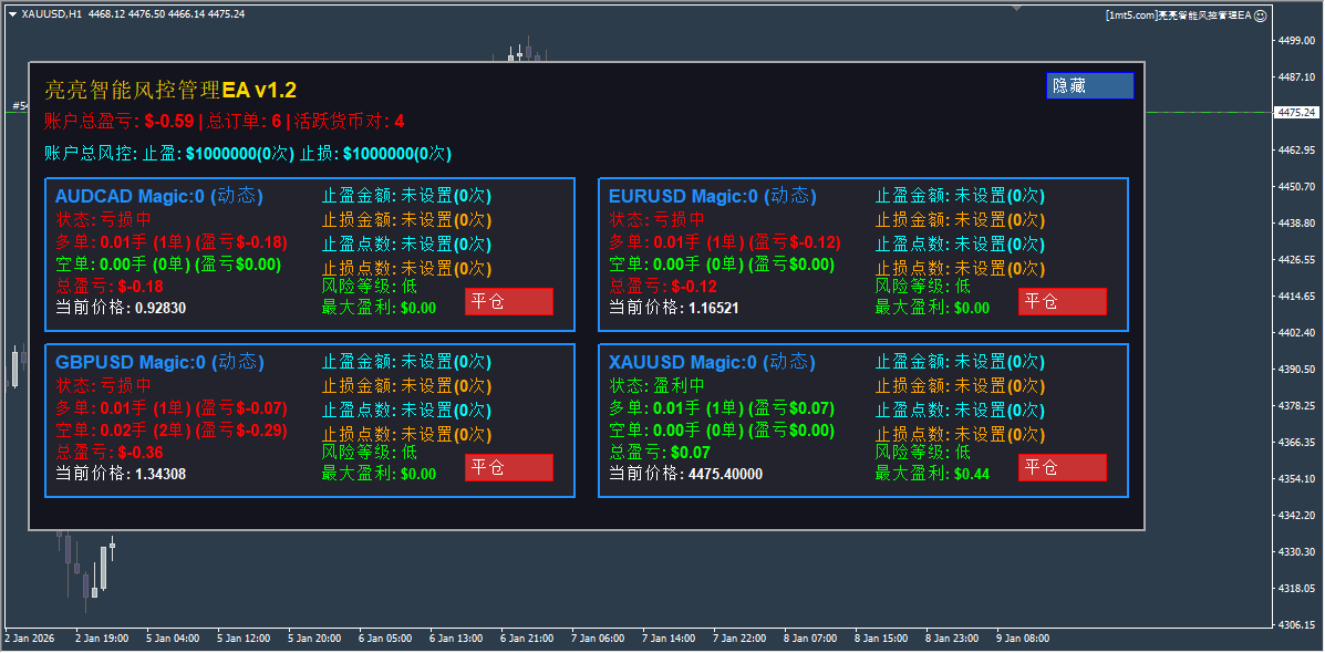 【亮亮智能风控管理EA v1.2】 外汇交易者的终极风控神器!告别爆仓,稳定盈利!