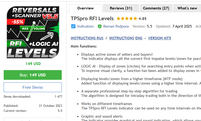 – 包含来自更高时间框架的水平(RFI)- MTF 模式。