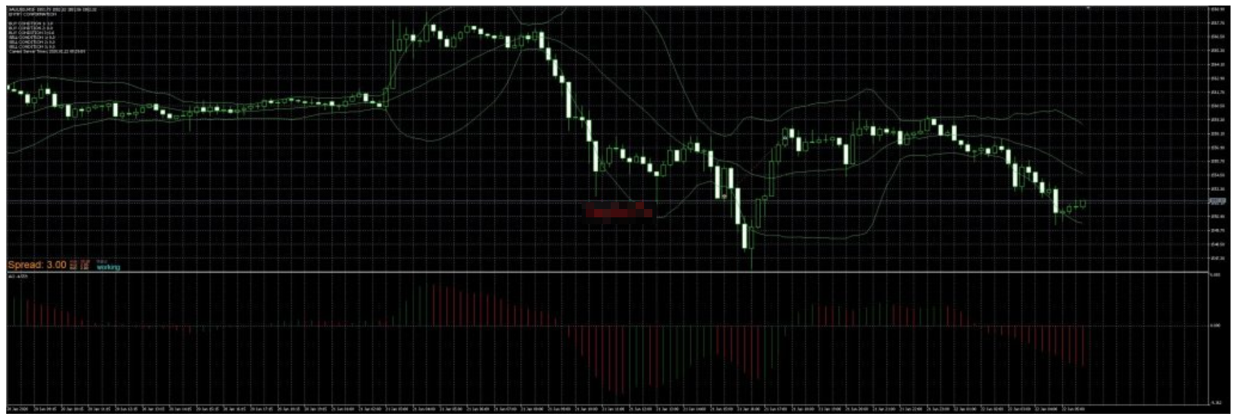 这款EA的核心策略可概括为“多指标趋势共振追踪”。它并非单一依赖某个指标,而是通过布林带(BB)、动量震荡指标(AO)和指数移动平均线(EMA)的组合,对市场趋势和动量进行多重确认,力求提高入场的准确性。