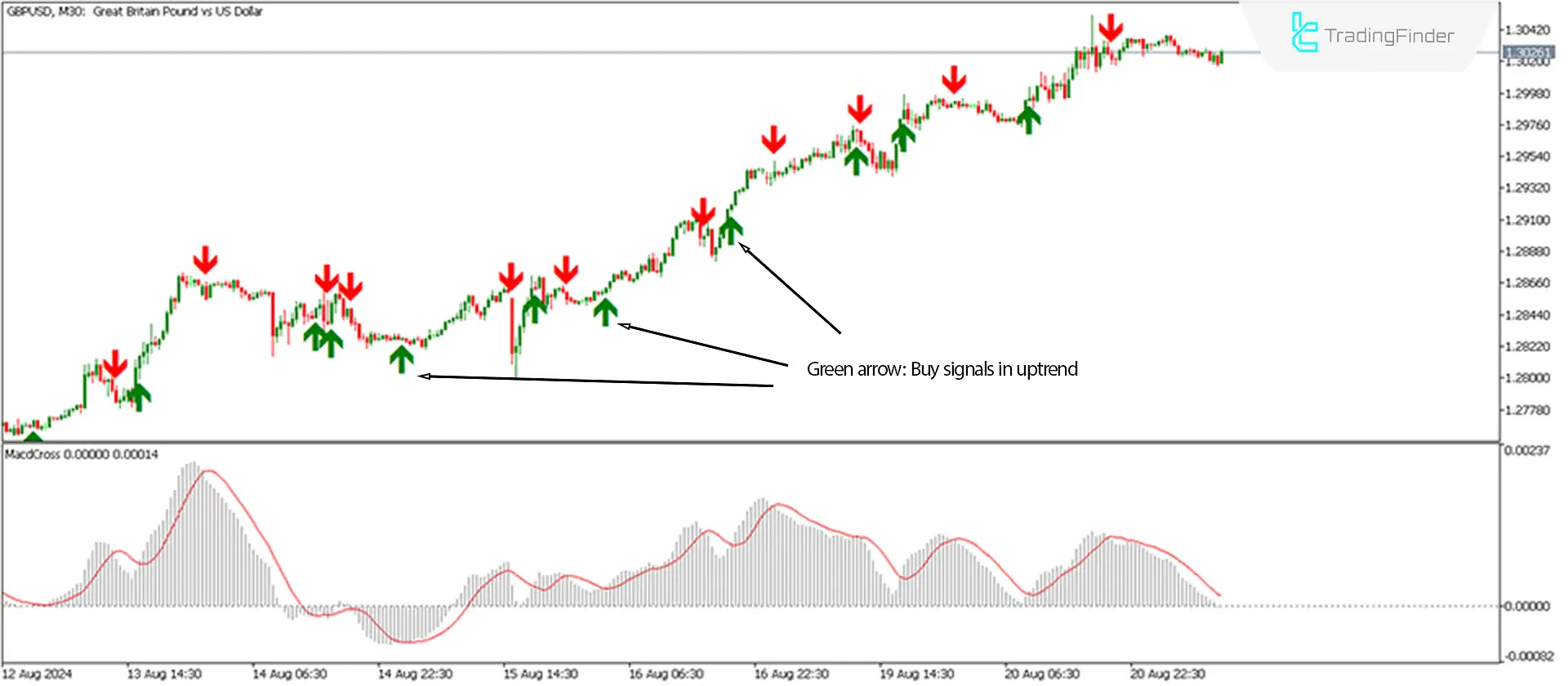 适用于 MetaTrader 5 的 MACD 交叉箭头和警报指标 下载 - 免费 - [交易搜索] | MACD Crossover Arrows & Alert Indicator for MetaTrader 5 Download - Free - [Trading Finder]