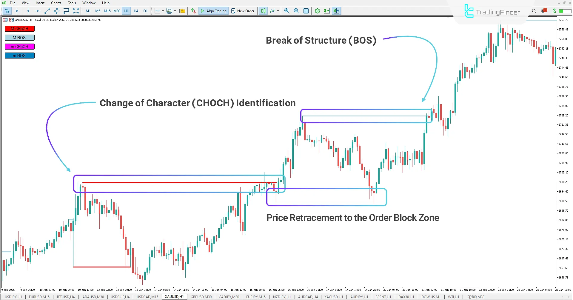 MT5 市场结构指标 (BOS-CHOCH) 下载 - 免费 - [TFlab] | Market Structure Indicator (BOS-CHOCH) for MT5 Download - Free - [TFlab]
