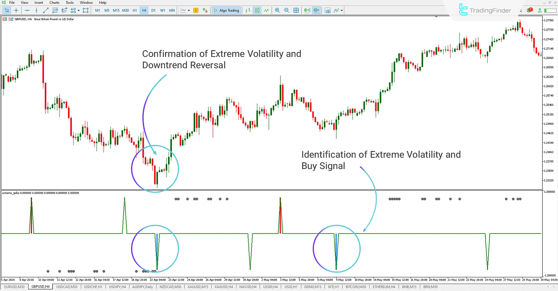 MetaTrader 5 的极端峰值指标 下载 - 免费 - [交易搜索] | Extreme Spike indicator for MetaTrader 5 Download - Free - [Trading Finder]