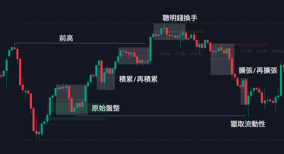 透过 MMXM 模型能帮助我们理解市场背后操盘逻辑,如果你能看出现在是在 MMXM 模型的哪一个阶段,你就可以试着从流动性与市场结构的角度解读价格分析进场点。即使来不及在聪明钱换手时进场,也可以试着识别原始盘整在哪个区块(通常是留有等高/等低或低阻力流动性的位置),在扩张/再扩张阶段进场。