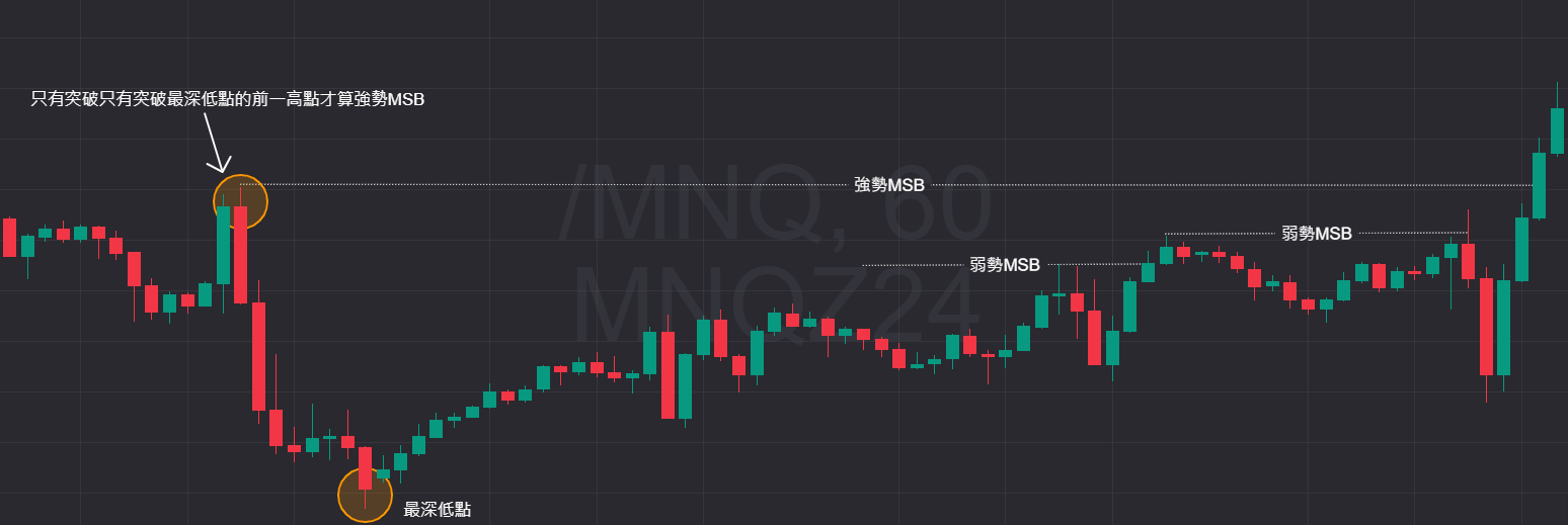 MSB(Market Structure Break)其实就等同CHoCH(Change of Character),这些名词都是从ICT起源的,两种都有人使用,基本上就是指趋势改变,你想怎么称呼都可以。