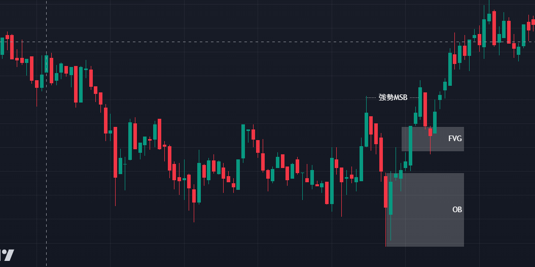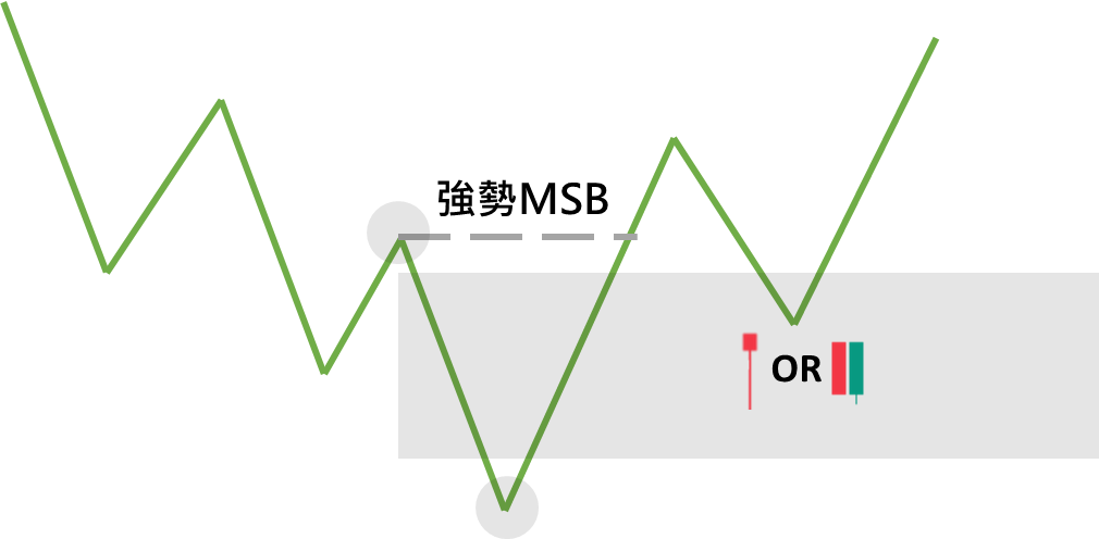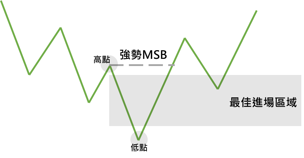 当你确认了强势 MSB 后,下一步就是找出最佳的进场区域。这个区域是市场上大资金、主力或机构投资者通常会进行大规模买卖的地方。